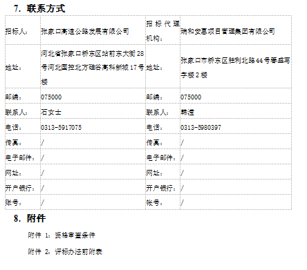 2.1.1項(xiàng)目概況:張家口高速公路發(fā)展有限公司所屬各單位,包括:公司本部、京藏高速運(yùn)營(yíng)中心、京新高速運(yùn)營(yíng)中心、張石高速運(yùn)營(yíng)中心(收費(fèi)稽查大隊(duì))、柴溝堡養(yǎng)護(hù)工區(qū)、蔚縣隧道管理所、九連城養(yǎng)護(hù)工區(qū)、二秦高速運(yùn)營(yíng)中心駐地的職工食堂及物業(yè)管理服務(wù)。